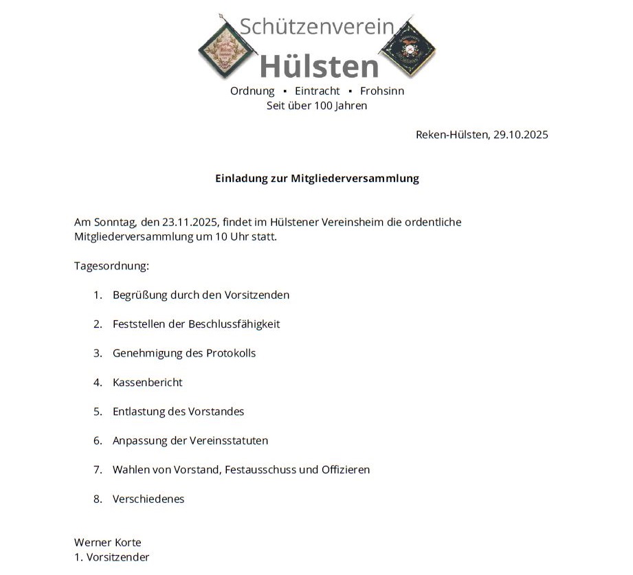 Infos zum Wintergang unseres Schützenvereins Hülsten am Samstag, 24.01.2026